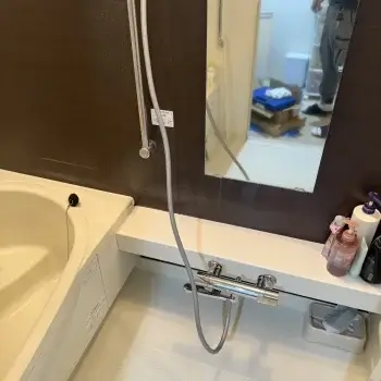 浴槽の循環フィルターのつまりや、シャワーのサーモスタットの不具合が考えられ、部品や本体の交換を行います。