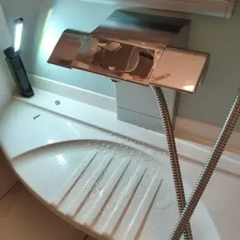 浴槽の循環フィルターのつまりや、シャワーのサーモスタットの不具合が考えられ、部品や本体の交換を行います。