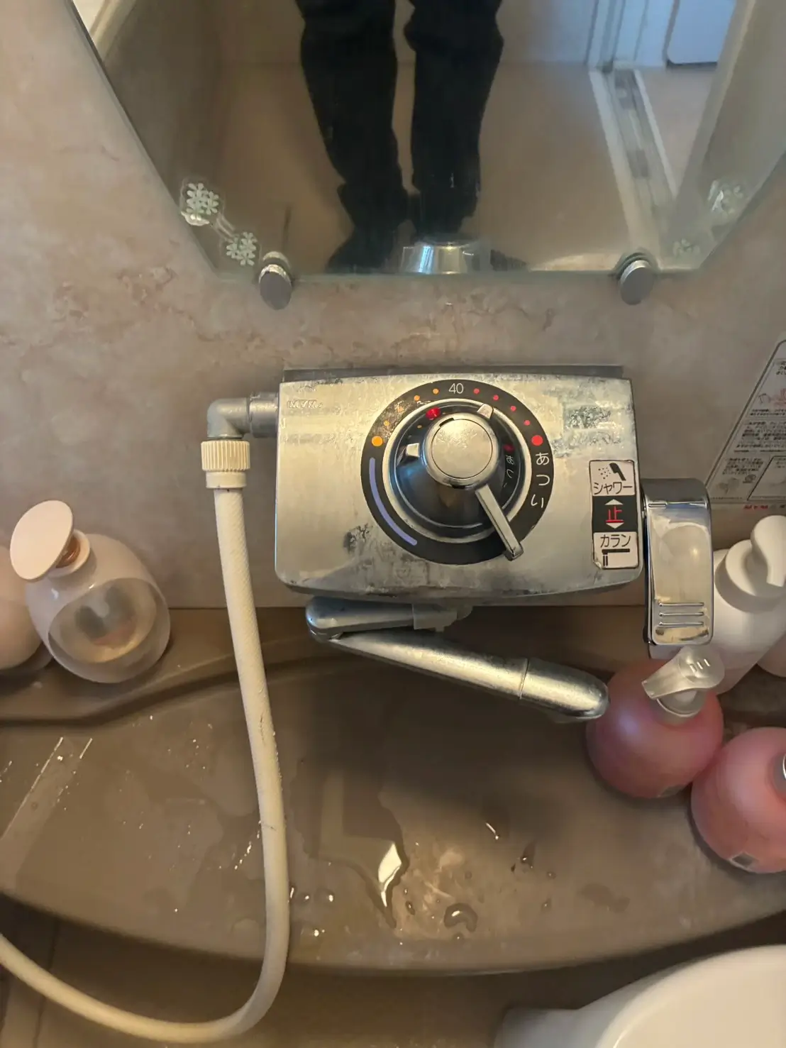 夜間にシャワーヘッドから水漏れが発生しているとのことで、すぐに現場へ向かいました。
