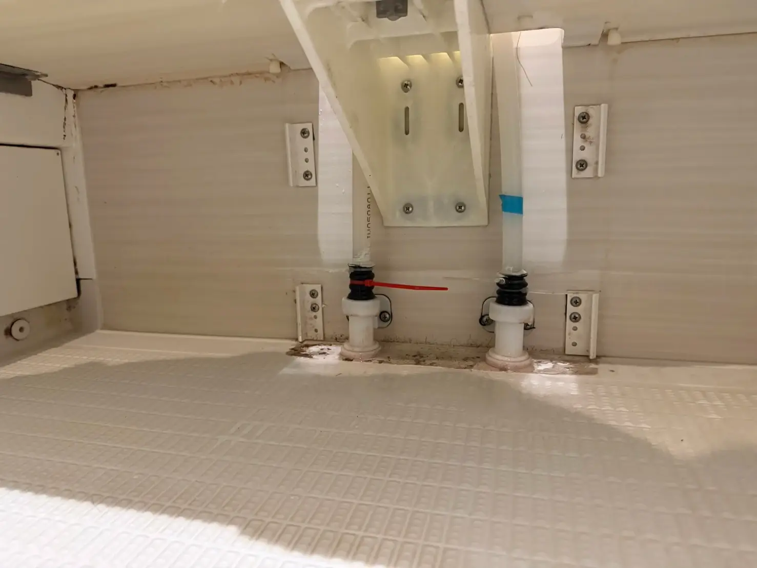 お風呂の蛇口の根本から水が漏れていて、気づいたときにはパネルの下が濡れていました。