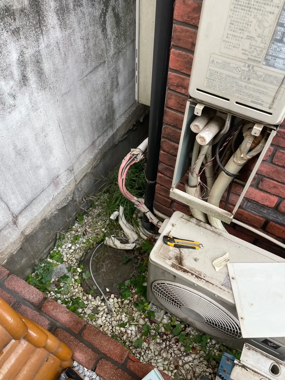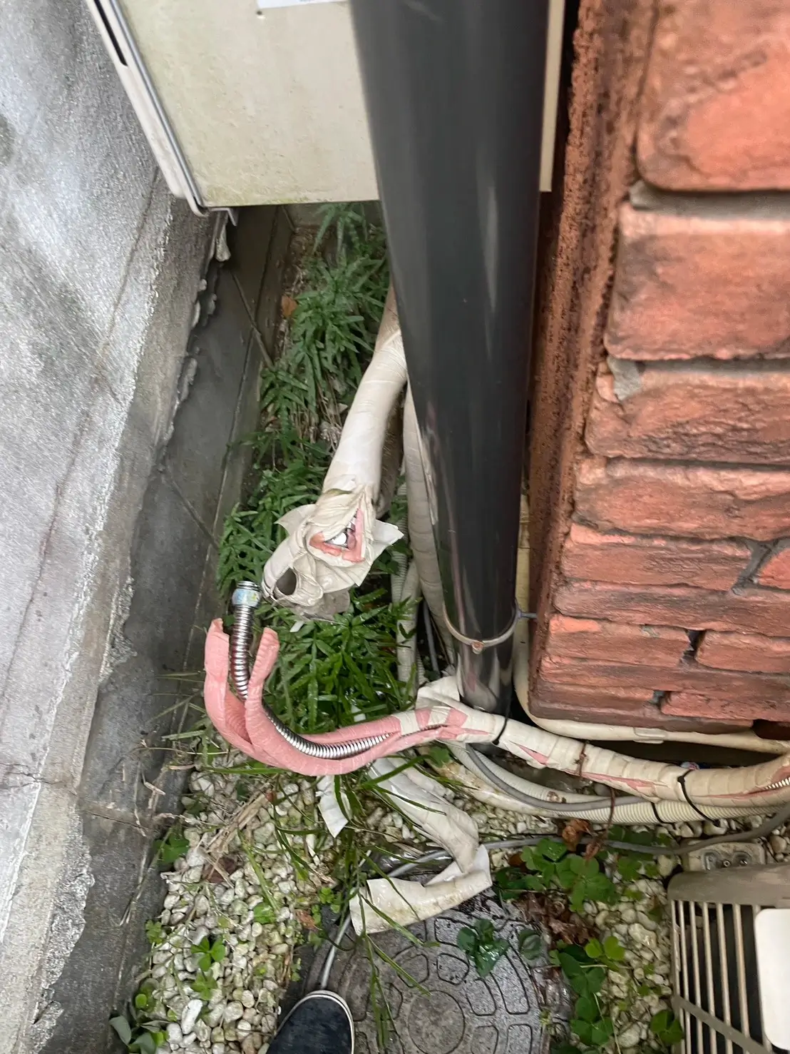 経年劣化により配管の一部から水がにじみ出ており、地面が常に湿っている状態でした。